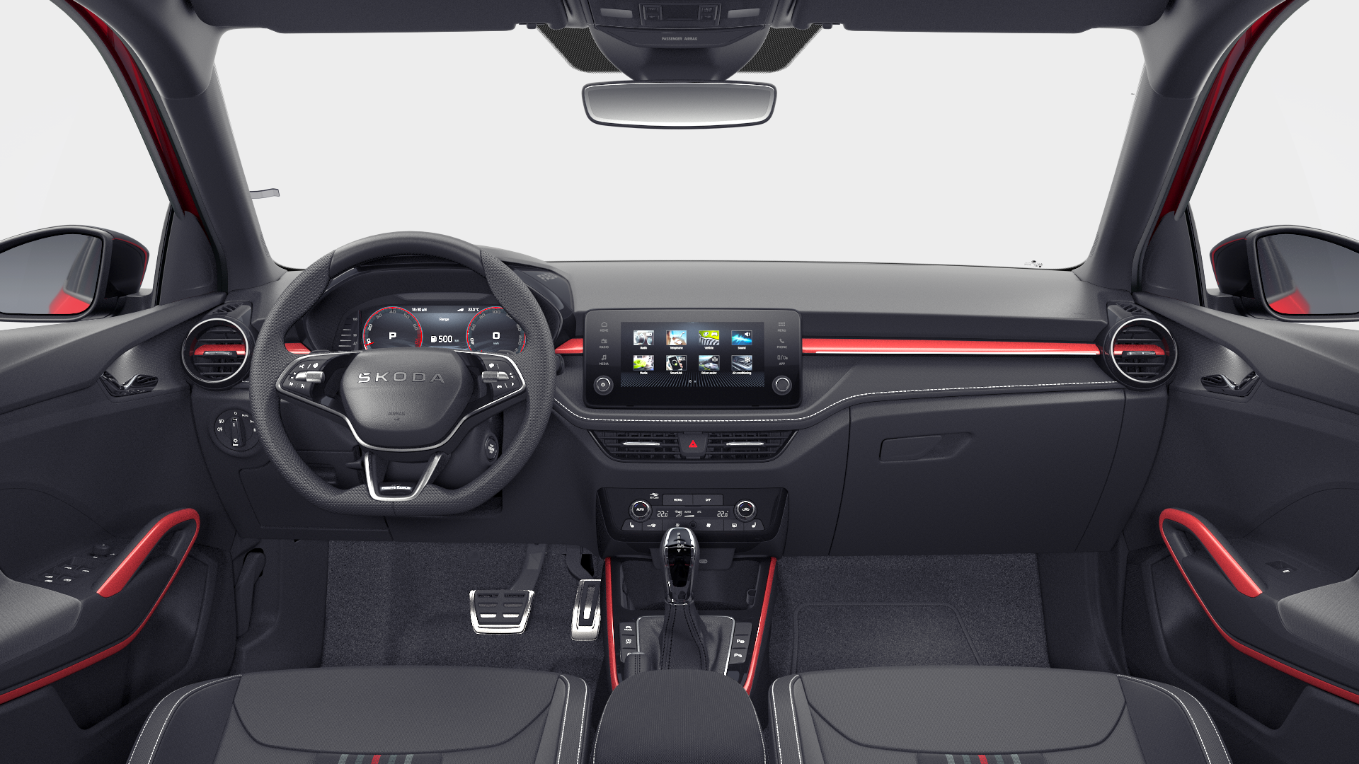 - Sportovní multifunkční vyhřívaný kožený volant s pádly a plaketkou Monte Carlo